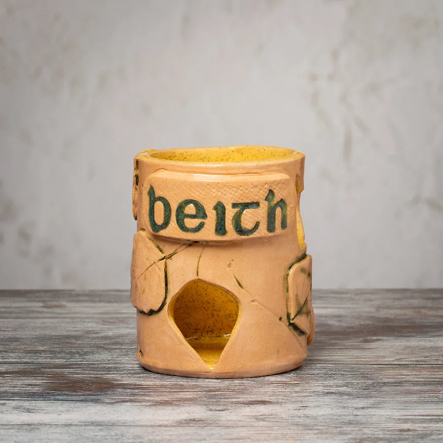 Your lantern has been crafted using handpicked leaves from Anita’s garden in Co. Meath. Each leaf has been carefully imprinted into the clay creating a unique design just for you. With birch in your home you may feel protected and surrounded with care, affection and new life.