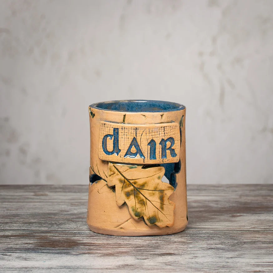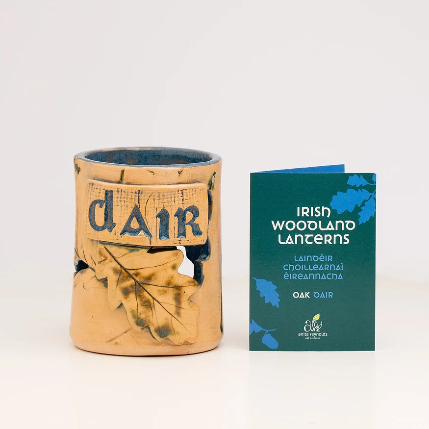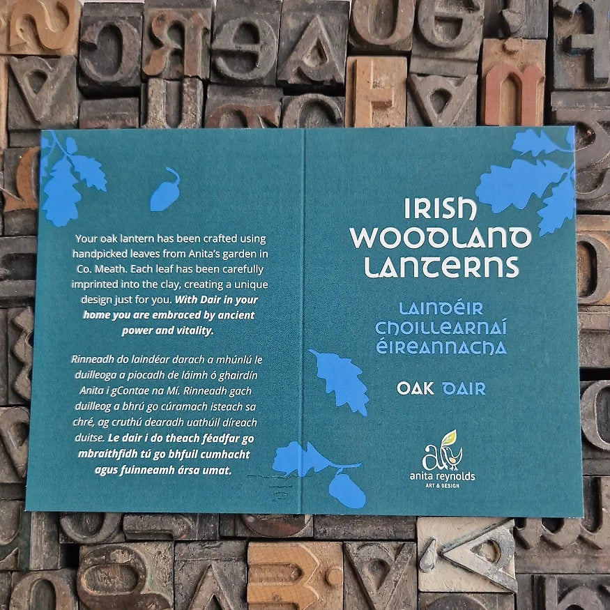 Your oak lantern has been crafted using handpicked leaves from Anita’s garden in Co. Meath. Each leaf has been carefully imprinted into the clay, creating a unique design just for you.