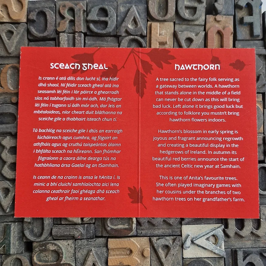 Hawthorn’s blossom in early spring is joyous and fragrant announcing regrowth and creating a beautiful display in the hedgerows of Ireland. In autumn its beautiful red berries announce the start of the ancient Gaelic new year at Halloween.