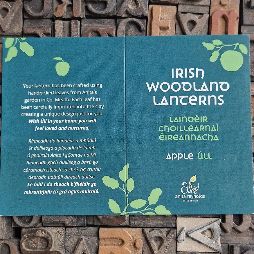 Your lantern has been crafted using handpicked leaves from Anita’s garden in Co. Meath. Each leaf has been carefully imprinted into the clay creating a unique design just for you.