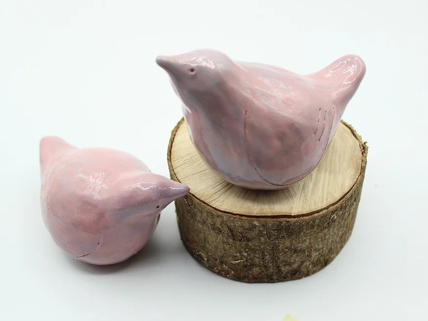My birds are handmade and each one is different. The forms are simple created in lots of different poses to give the impression of movement and energy when they are placed together. They look great grouped together on a deck, doorstep or windowsill creating a colourful focal point.