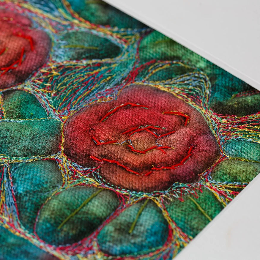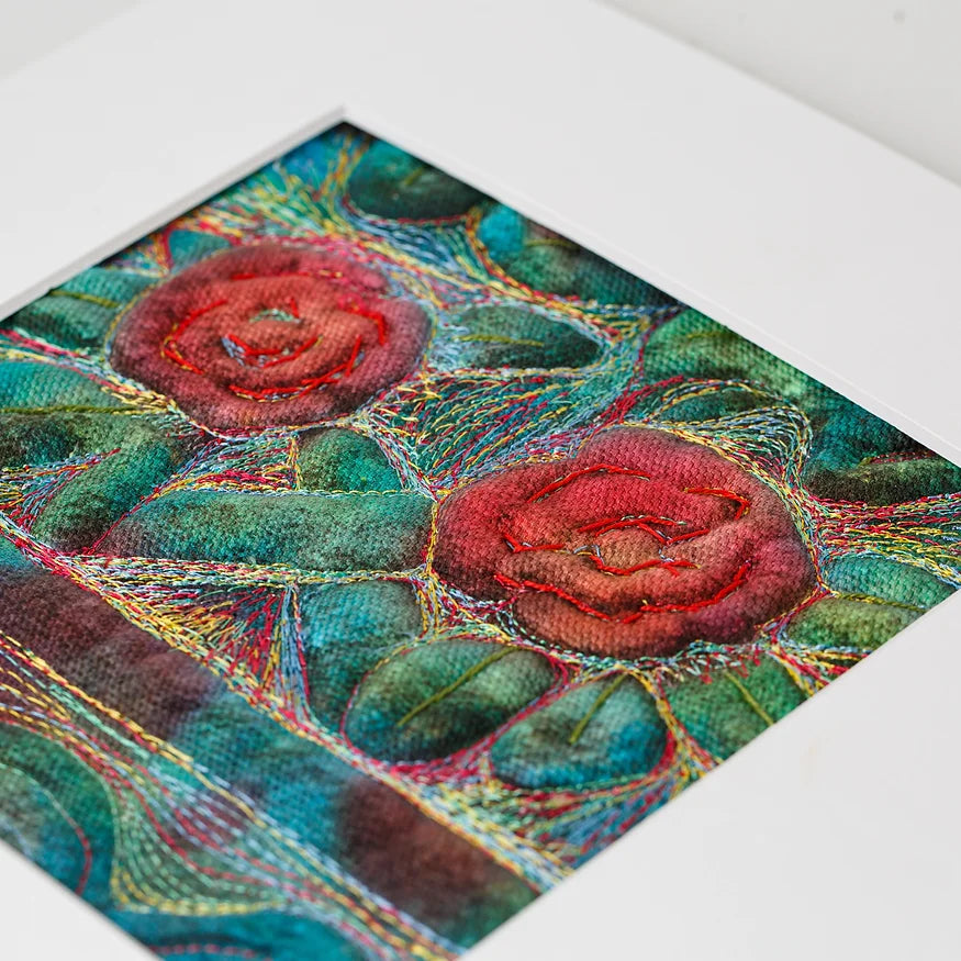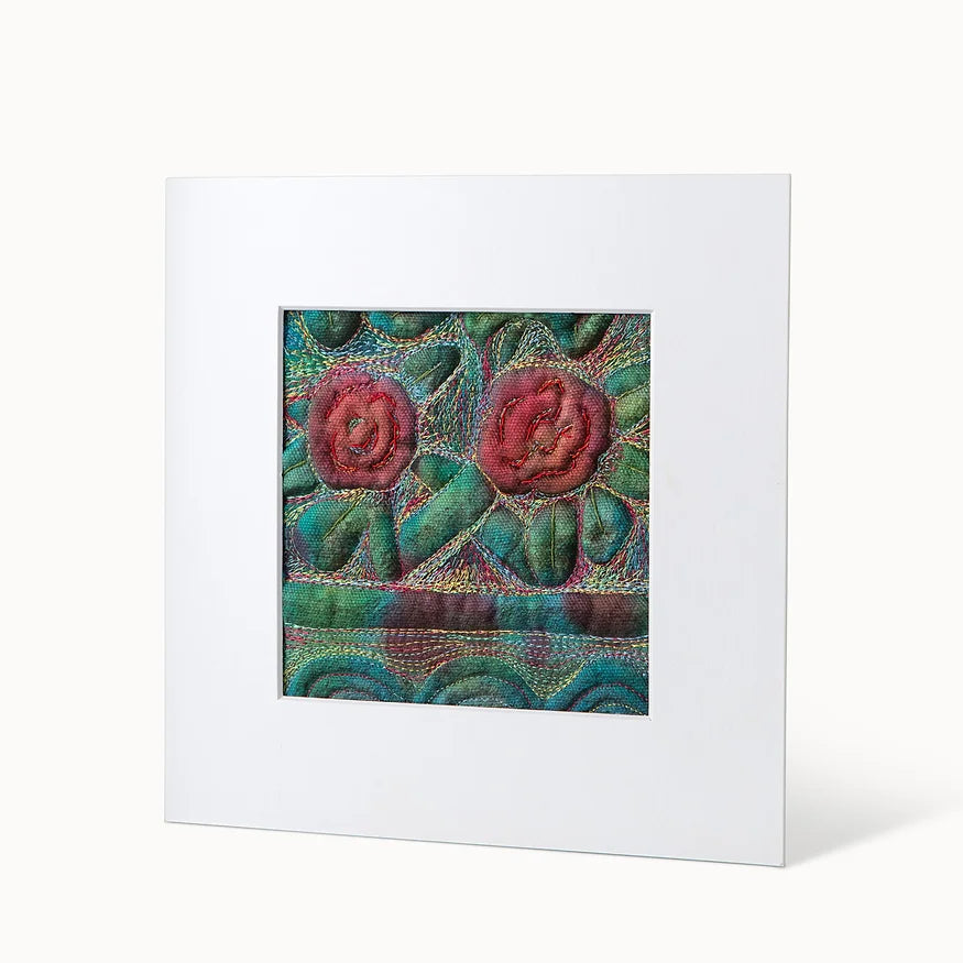 Anita is delighted to bring this little section of the original artists work to life on cotton with colourful dyes. Each piece is quilted using vibrant colours. Finished in machine embroidery she creates a tactile relief effect like the original carving.