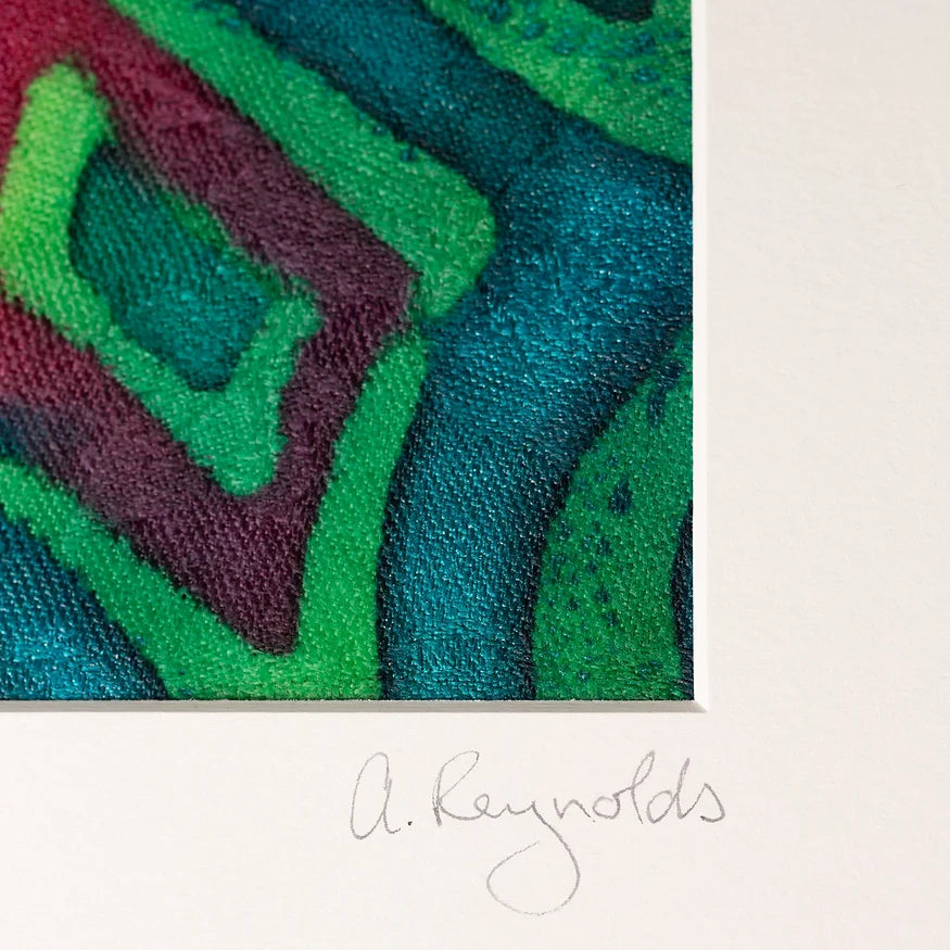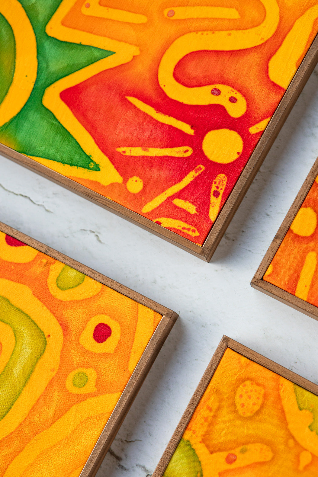 I hope you enjoy this playful interpretation of our ancient artists' work. Each piece is unique, created by hand painting wax and dyes on Irish vintage linen.