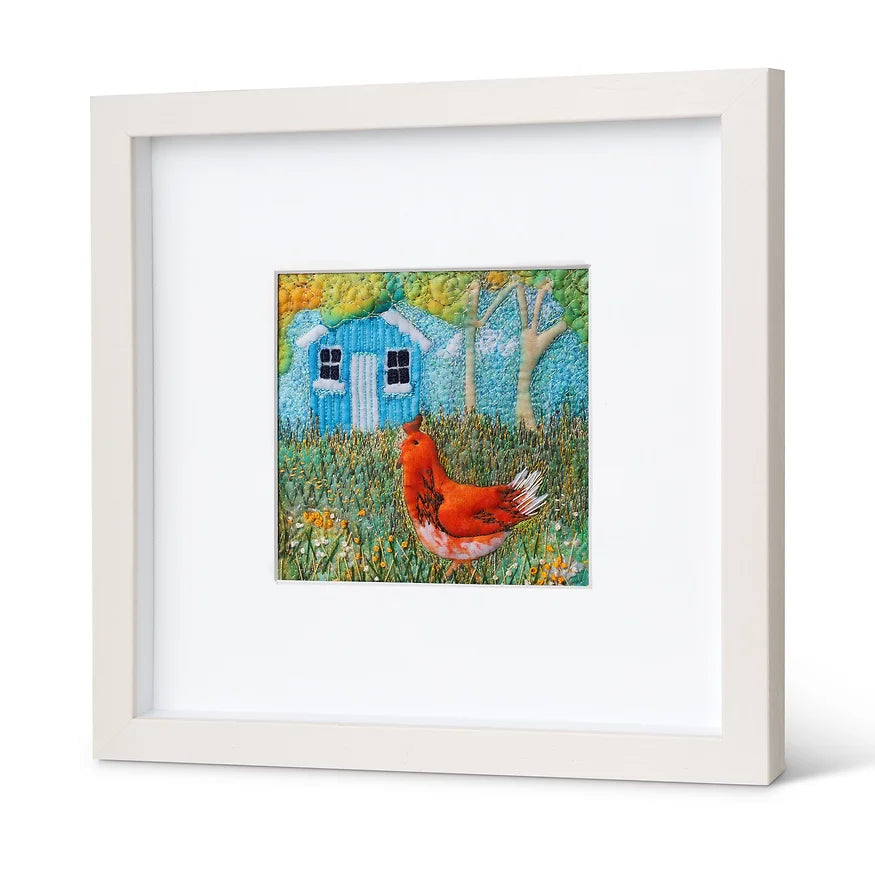 Each piece is made on cotton that is printed with my design and then stitched by machine and by hand. A layer of wadding is added to create a relief effect after stitching.