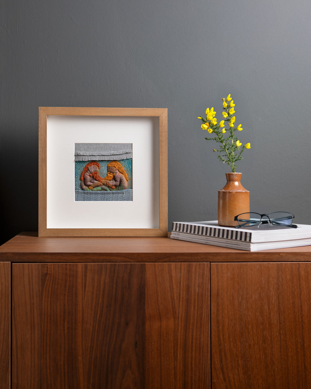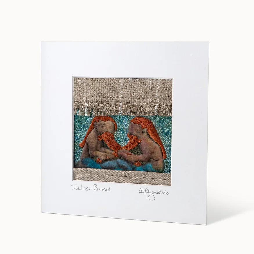 Anita loves to find fun motifs from our wonderful carved heritage. This quirky  design which shows two men tugging their beards originates from the beautiful  Monasterboice cross in Co.Louth.